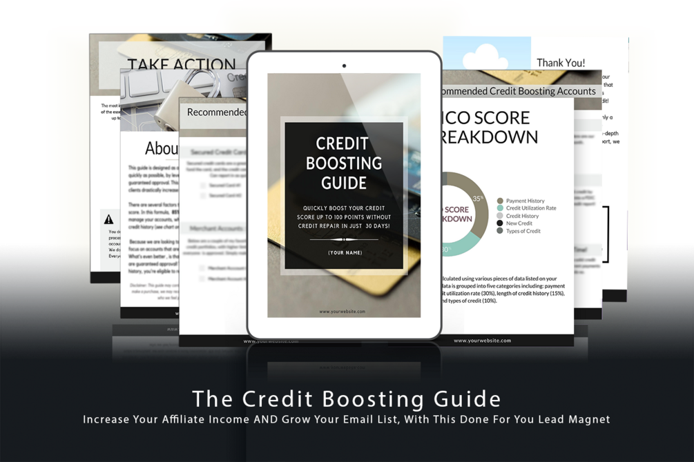 Increase your affiliate income and grow your email list at the same time! Our done-for-you resource is the perfect lead magnet to help you earn more money, while providing valuable tools to help your potential client increase their credit scores. This 7 page template is fully customizable in CANVA and can be accessed from multiple devices. Don't leave money on the table!
